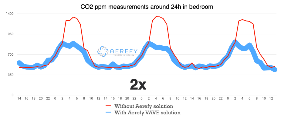 Aerefy tackled the issue head-on by optimizing ventilation based on real-time air quality data. Instead of ventilating on a fixed schedule, Aerefy dynamically adjusts airflow based on actual CO₂ concentrations, especially during critical nighttime hours. Measurements prove it very effective.